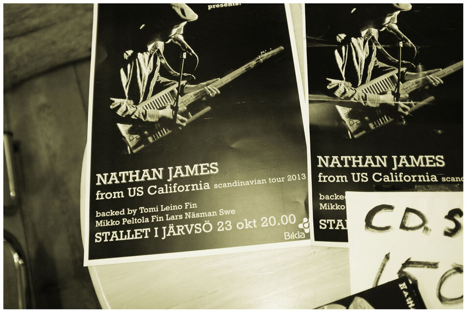 Den amerikanske gitarristen Nathan James med ett svensk finskt band på Stallet Stenegården i Järvsö 23 oktober 2013